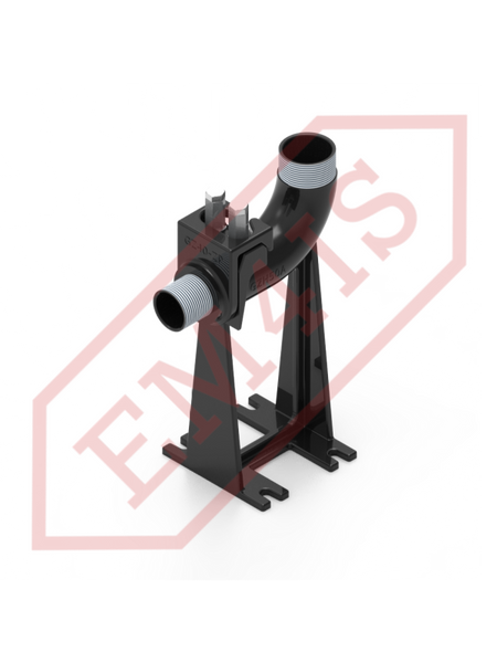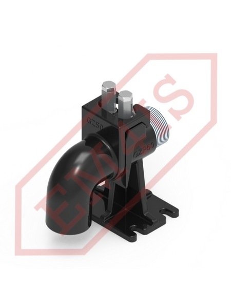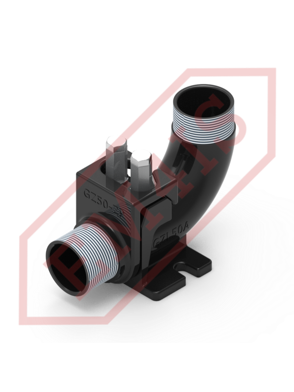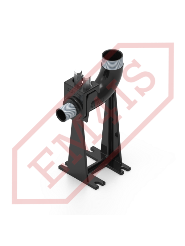 A coupling foot, also often called a coupling elbow, for professional installation of submersible pumps in pumping stations. Thanks to the coupling foot, the pump with the screwed hitch is lowered to the bottom of the tank or pulled out along two pipe guides without having to enter the tank. Even in the case of a completely flooded pumping station, when the bottom is not visible, the pump will still precisely rest on the foot and engage. The O-ring sealing between the hitch and the foot ensures effective adhesion of the planes and tightness of the connection, thus minimizing pressure losses and pump efficiency.