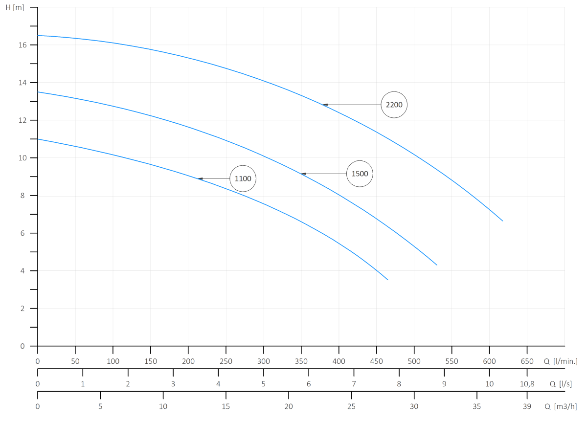 - Максимальна продуктивність Qmax = 15 л/с / 900 л/хв / 54 м3/год,